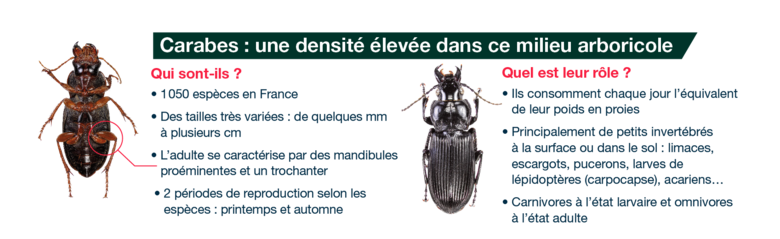 La densité de carabes est élevée sur ce site arboricole : 33 espèces pour 1159 individus collectés. C’est supérieur aux références arboricoles du Vaucluse et de l’Hérault.