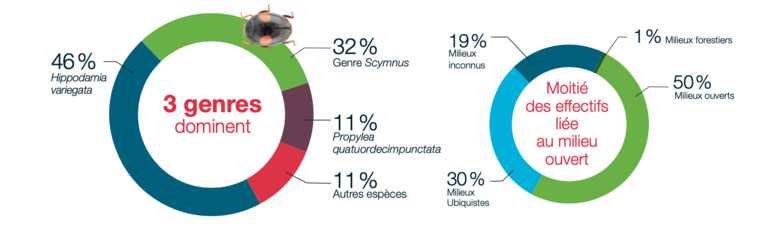 Le site héberge surtout des coccinelles prédatrices, notamment aphidiphages, c’est-à-dire qui se nourrissent entre autres de pucerons. Des agents de lutte biologique !