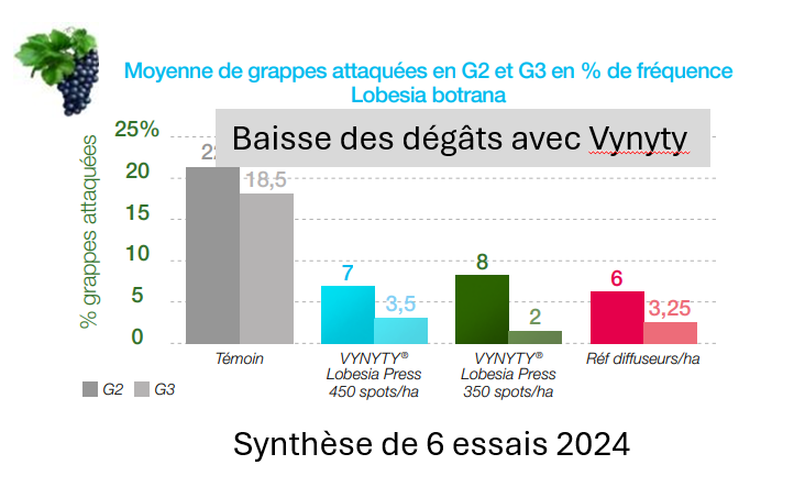 La gamme VYNYTY contrôle l’Eudémis de la vigne, la tordeuse orientale du pêcher et la mineuse de la tomate grâce à un gel biosourcé diffusant des phéromones. Efficace et innovante car ne nécessitant pas de dépose, elle a été présentée pendant le Sival 2025.