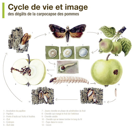Le carpocapse réalise une à deux générations en France, parfois trois dans le Sud.