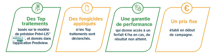 Si l’objectif de résultat n’a pas été atteint, une garantie de performance (€/ha) sera activée pour contribuer au revenu de l’agriculteur. L’investissement dans la protection fongicide est ainsi maîtrisé.