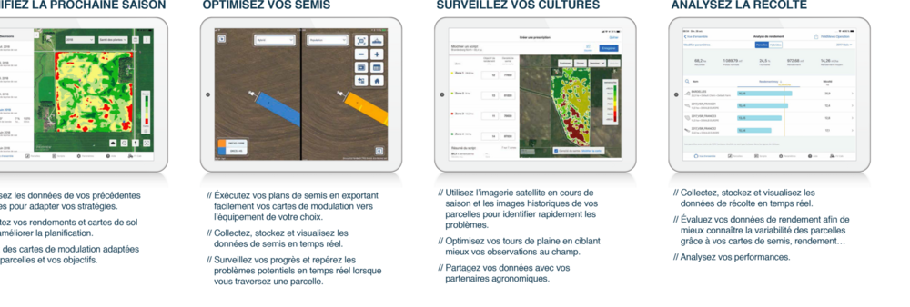 - Après la récolte, vous pouvez analyser votre rendement par parcelle ou hybride/variétés afin d'en comprendre le fonctionnement. Puis partager facilement ces données avec vos partenaires commerciaux et agronomiques pour les analyser et commencer à planifier la saison prochaine.
