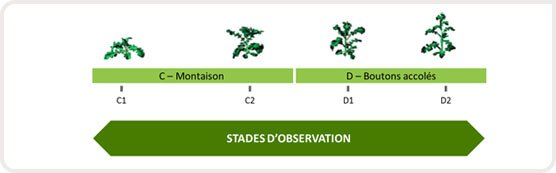 Les pièges jaunes doivent être placés au sommet de la végétation, dès les premiers réchauffements de fin d’hiver (les vols sont généralement constatés à partir de 12°C). La surveillance est de rigueur dès le début de l’élongation du colza jusqu’au stade « boutons séparés ».