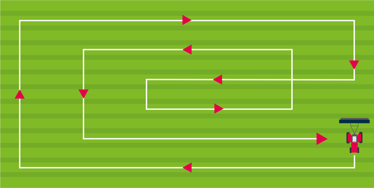 - Commencer par « détourer » la parcelle (voir schéma ci-dessous), à vitesse réduite. En effet, l’essentiel de la faune sauvage, est présente en bordure des parcelles.