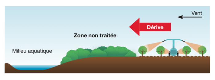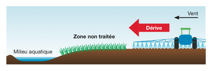 Exemple de phrase SPe3 : " Pour protéger les organismes aquatiques, respecter une zone non traitée de 5 m par rapport au point d'eau. "