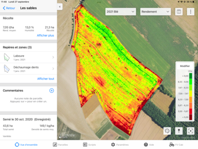 « En superposant les différentes données collectées, cartes de sol - densité de semis, choix variétal, épandage d’engrais, rendement - vous identifiez les pratiques les plus performantes et surtout, mesurez l’impact de telle ou telle décision sur le rendement final. Cette plateforme d’agriculture numérique compile chaque paramètre pour n’en oublier aucun. »