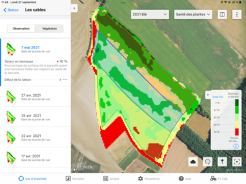 - Il est même possible de délimiter et sauvegarder différentes zones de parcelle en vue d'une analyse plus poussée.