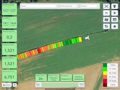 Avec FieldView, plus besoin d’effectuer les pesées aléatoires de grains comme auparavant. « Au moment de la moisson, je dispose de peu de temps pour les réaliser », partage le céréalier. Désormais, grâce à FieldView non seulement je gagne en efficacité mais aussi en précision. » En effet, lors du chantier, à mesure qu’avance la moissonneuse, le capteur de FieldView détecte le poids des grains. Ensuite, grâce à la géolocalisation de la machine, les résultats s’affichent sur la tablette. « C’est visible en un coup d’œil, car un code couleur matérialise chaque variété sur la carte de la parcelle, explique-t-il. Ainsi, je connais le rendement pour chaque zone récoltée. » La précision s’établit au m². Toutefois, une information fiable et géolocalisée nécessite d’enregistrer dans FieldView les informations du semis (densité, variété) lors de ce chantier.