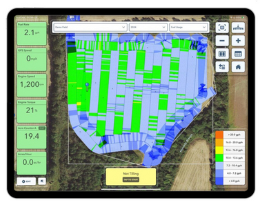 FieldView mesure un autre critère qui a un impact sur le résultat économique d’une culture : la consommation de carburant. Cette analyse s’applique pour tous les matériels de travail du sol de récolte. Ainsi, une nouvelle carte est à superposer lors du bilan de la parcelle.