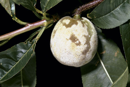 Les fruits peuvent aussi prendre un aspect blanc. En cas de fortes attaques, ils peuvent se craqueler et tomber sur le sol.