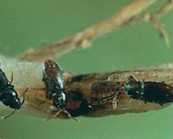 Les adultes, qui hivernent dans le sol, sous les restes de cultures, reprennent leur activité au moment de la levée des betteraves.