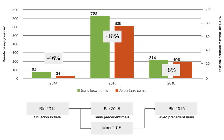 La technique du faux-semis évite la concurrence des mauvaises herbes en post-levée et limite par la suite le potentiel de mauvaises herbes à détruire par traitement. Avant le semis, elle implique une destruction intermédiaire, mécanique ou chimique.