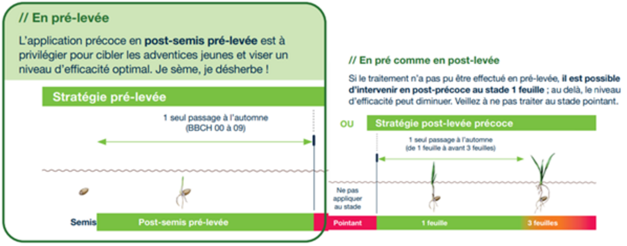 Le positionnement à privilégier est la pré-levée : je sème, je désherbe.