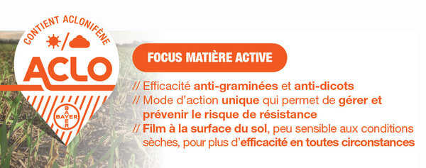 Mateno est le seul herbicide d'automne du marché à contenir cette substance active. Le trio aclonifène, flufenacet et diflufenican fait de Mateno un produit "tout terrain" avec un haut niveau d'efficacité (+ de 90% en moyenne sur graminées et dicotylédones).