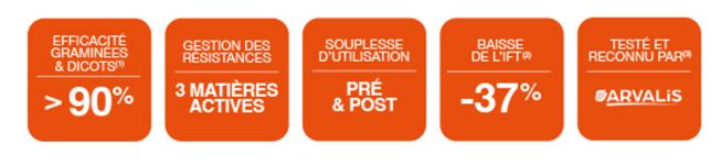 Pour les usages autorisés, doses, conditions et restrictions d'emploi : se référer à l'étiquette du produit ou à la fiche produit sur