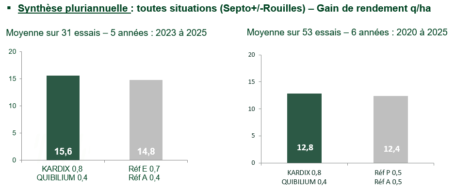 Efficacité et régularité sur septoriose et rouilles quelle que soit la pression maladie
