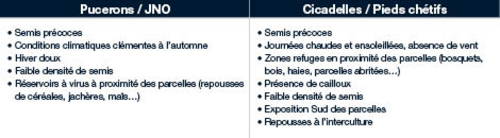 • En fonction des facteurs de risque disponibles précocement avant le semis (présence de pucerons dans l’environnement parcellaire, présence des virus dans les repousses, les maïs ou les graminées, historique...).
