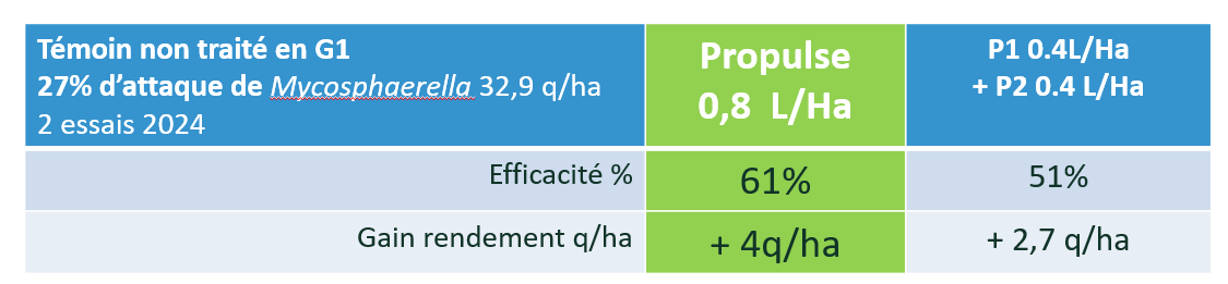 Quelle stratégie de protection efficace mettre en œuvre face à une forte contamination des parcelles de colza par Mycosphaerella ? Dans les essais 2024, Propulse donne les meilleurs résultats d’efficacité.