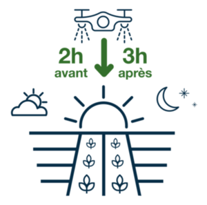 - Applicable à la floraison en respectant l’arrêté abeilles, Yearling / Propulse peut être appliqué 2 heures avant le coucher du soleil et 3 heures après.