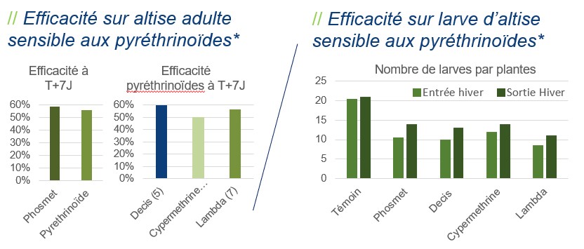 - Sur colza, il prouve son efficacité sur 8 ravageurs : petites altises, teignes, grosses altises, charançons du bourgeon terminal, charançons de la tige, charançons des siliques, tenthrèdes de la rave.