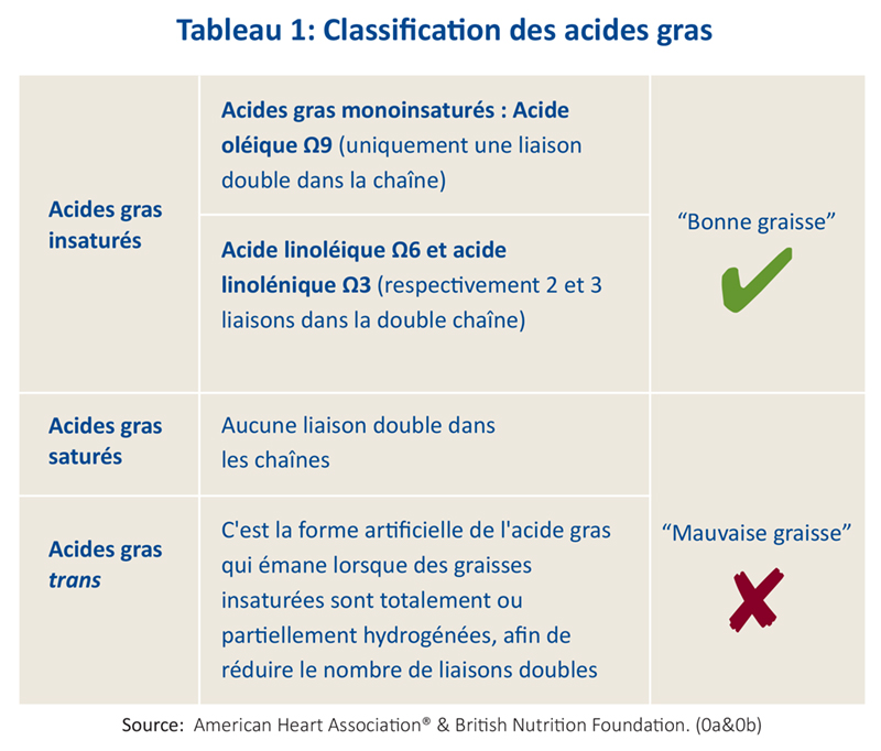 Les liaisons doubles causent une courbure dans la chaîne des acides gras insaturés qui rend la compaction plus difficile. Par contre, les acides gras saturés sans courbures se compactent facilement. Ils sont donc souvent solides à température ambiante.