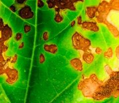 Le mildiou contamine surtout les feuilles, ce qui ralentit la photosynthèse. Lorsque la température avoisine les 20° et est suivie de pluies, le champignon trouve alors les conditions idéales à son développement. En quelques jours, la maladie s’exprime et provoque la perte des feuilles des plants avec la destruction entière des champs. La croissance des fruits des plants infectés est perturbée, ils deviennent plus petits et peuvent se déformer. Leur qualité marchande est alors fortement réduite.