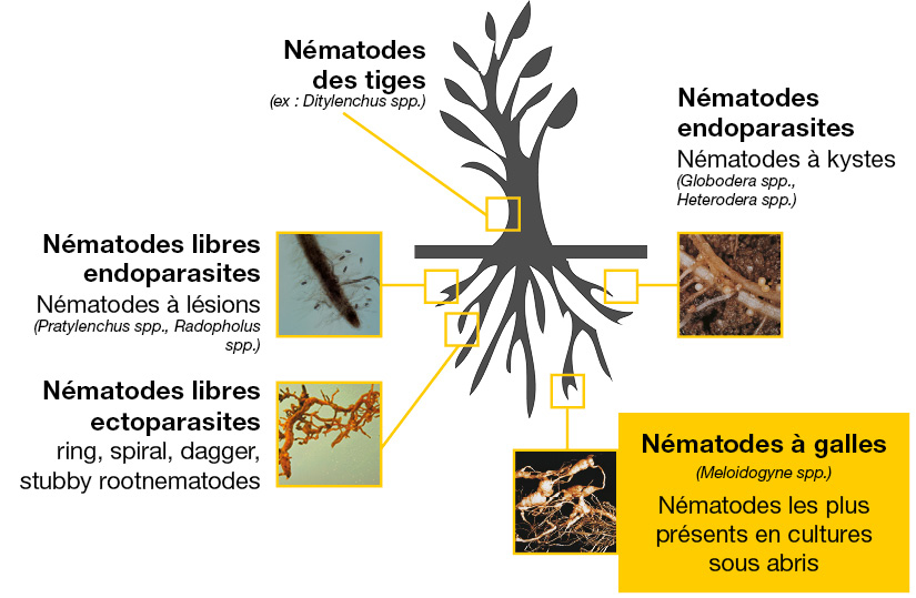 Les nématodes à galles infectent le système racinaire et créent des boursouflures sur les racines, paralysant la croissance des cultures.