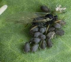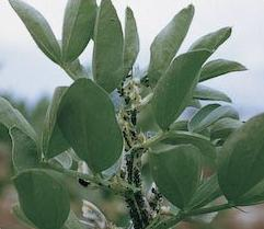 Le puceron noir de la fève, Aphis fabae, peut, par climat sec et chaud, infester les cultures de pois et surtout de féverole, avec des colonies allant jusqu'à 10 000 individus.