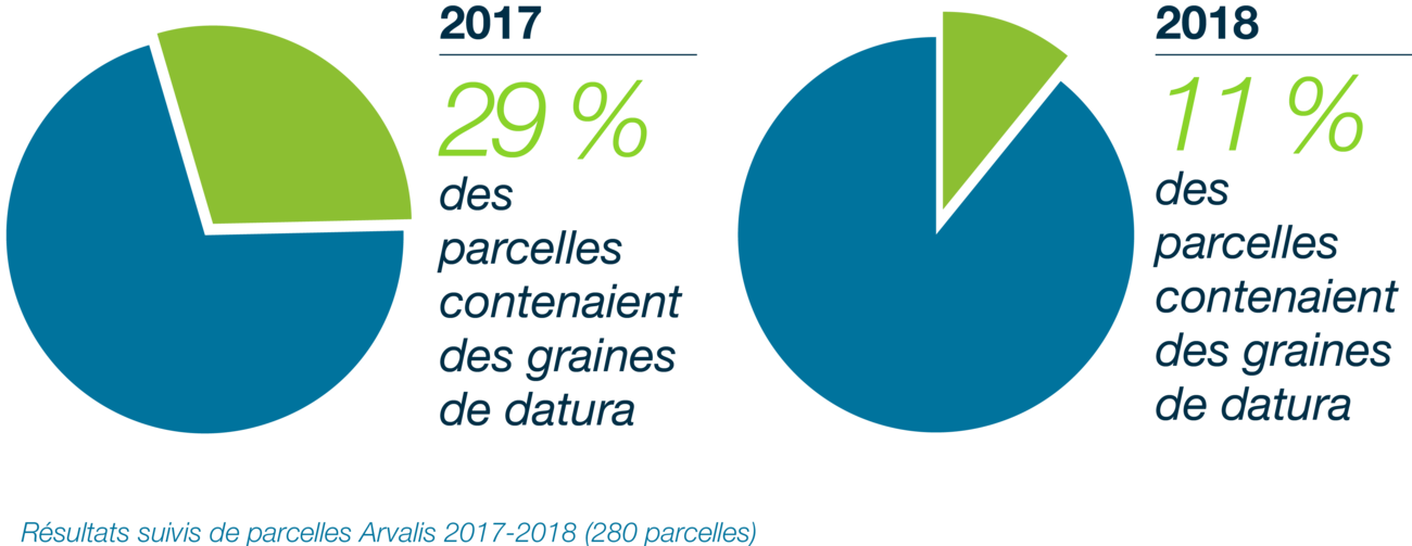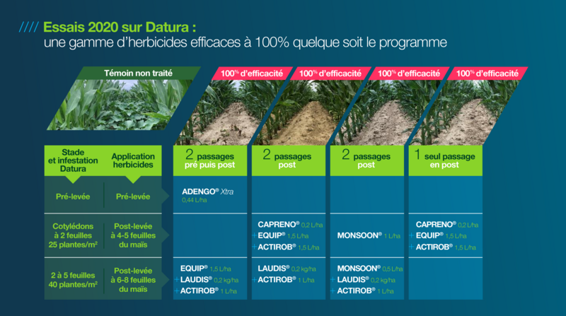 Le Datura stramoine, Datura stramonium, est une adventice de la famille des solanacées qui pousse partout en France dans les parcelles de cultures de printemps, et notamment de maïs. Il apprécie plus particulièrement les sols limoneux, argilo-siliceux, siliceux, acides et frais.