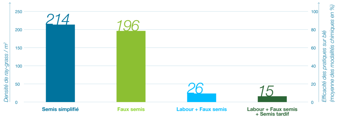 La mise en oeuvre des différents leviers agronomiques tels que le labour, le faux-semis ou le semis tardif est à choisir en fonction des conditions climatiques de l'année et peut permettre de diminuer la pression des adventices jusqu'à 90 %.