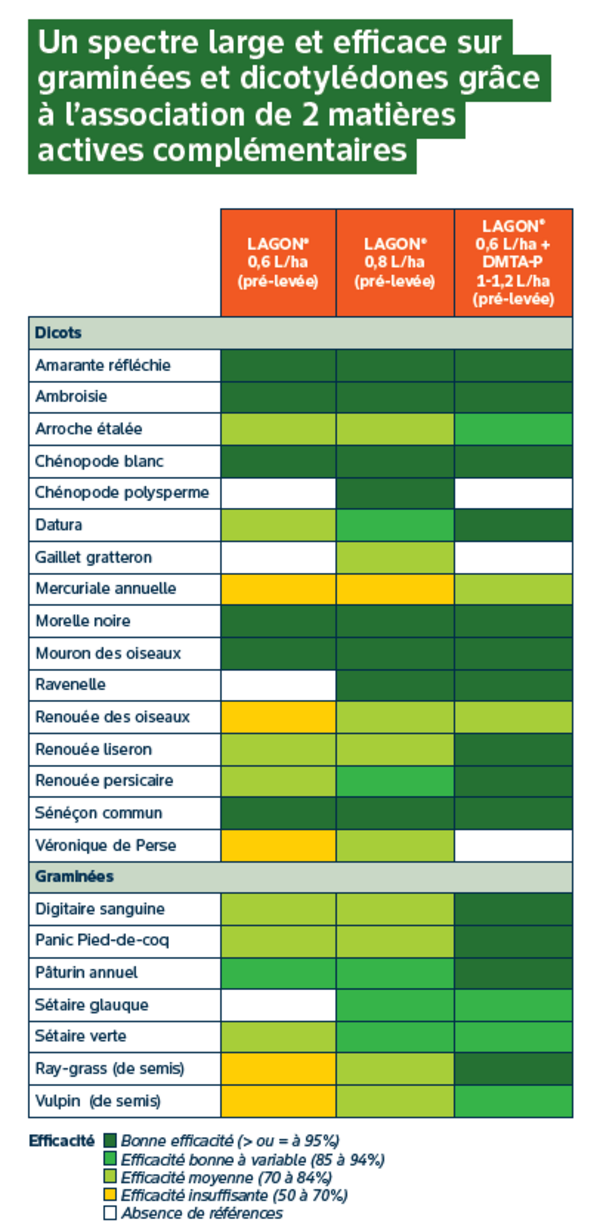 En associant l’aclonifène et l’isoxaflutole, l’herbicide Lagon sécurise la pré-levée du maïs et améliore le contrôle du ray-grass.