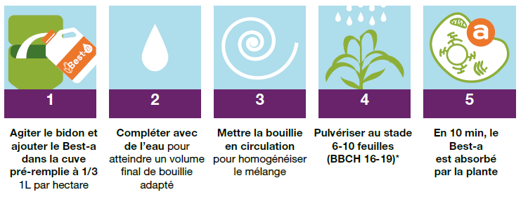 Face aux épisodes récurrents de manque d’eau, Bayer propose en exclusivité, pour la France, le biostimulant foliaire Best-a issu de la recherche d’Elicit-Plant. Du semis à la récolte, l’objectif est d’avoir un maïs performant grâce à une combinaison de solutions. Ainsi, en complément de l’amélioration génétique et d’une implantation réussie sans concurrence avec les adventices, la biostimulation des plantes limite les effets du stress hydrique.