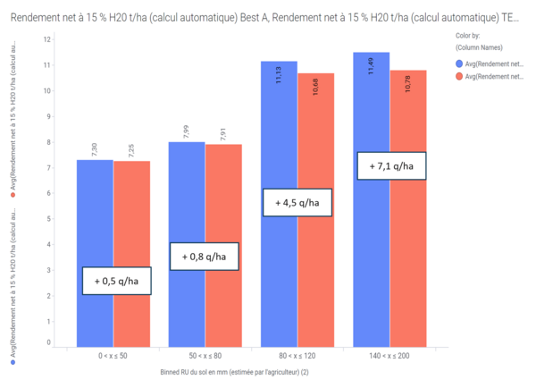Comment se comportent les maïs traités avec le biostimulant Best-a ? Les premières analyses de rendement mettent en évidence une meilleure valorisation par la plante avec un sol possédant une bonne réserve utile en eau ou une texture limoneuse.