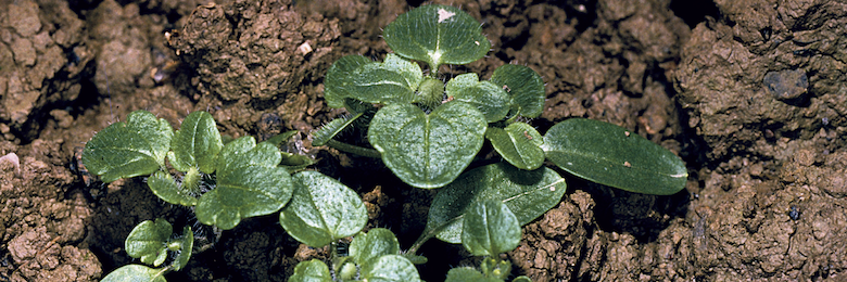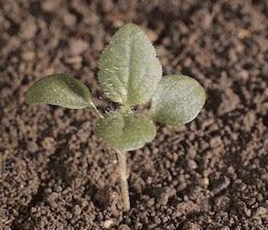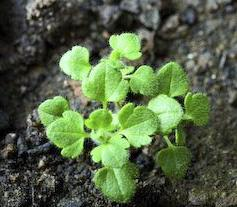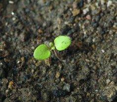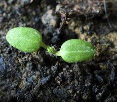Véronique des champs avec cotylédons et premières vraies feuilles