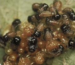 Le premier traitement contre le doryphore sera déclenché en fonction de la présence de l’insecte dans les parcelles de pommes de terre. Ainsi, n’intervenez que si vous observez au moins 20 larves sur une plante et si les stades de développement des deux tiers de ces larves sont compris entre le stade « grain de blé » et « grain de maïs ». L’objectif est d’appliquer le produit assez tôt pour éviter une deuxième génération.