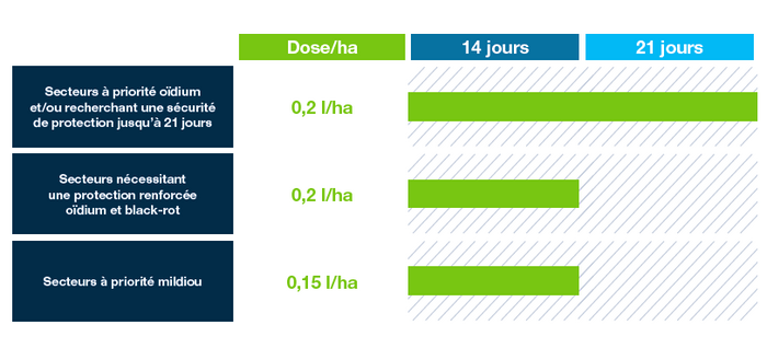 La modularité de dose de Luna® Sensation permet d’adapter la stratégie de protection à la pression oïdium et aux problématiques régionales.