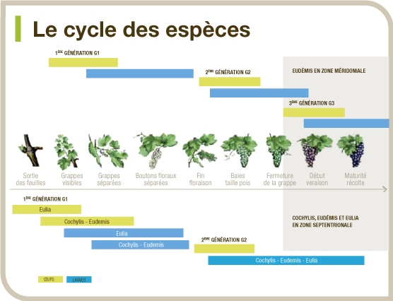 Les tordeuses ou vers de la grappe sont les chenilles de trois petits papillons : Eudémis, Cochylis et Eulia.